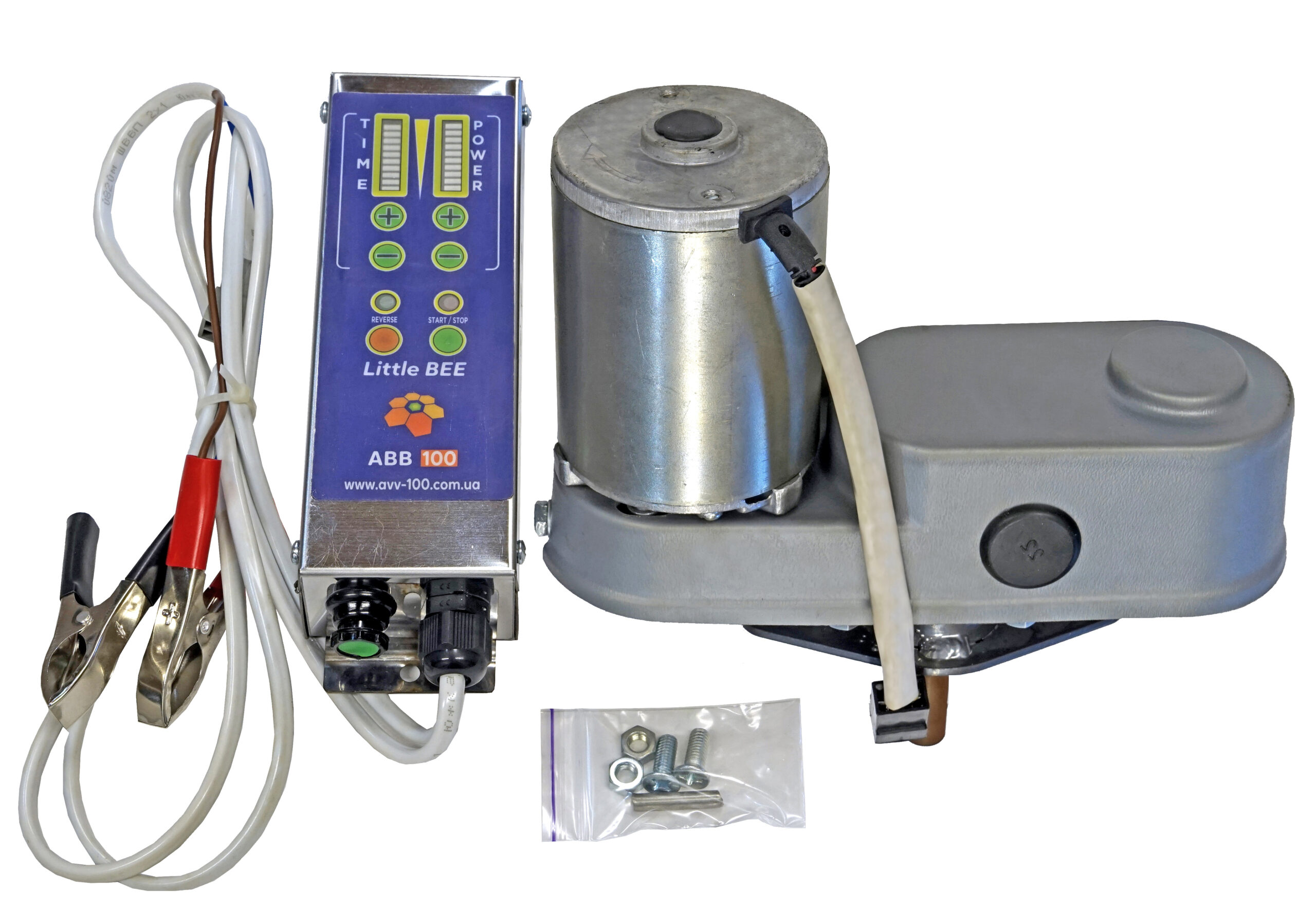 Привід медогонки електричний (далі електропривід) призначений для механізації процесу відкачування меду. Повністю взаємозамінний з ручними приводами медогонок, вироблених ТОВ «АВВ-100». Полегшує працю бджоляра, а також збільшує продуктивність його праці. Живлення електропривода здійснюється від акумуляторної батареї напругою 12В, або від мережі 220В через спеціальний блок живлення. Електропривід складається з мотор-редуктора та пульта управління.