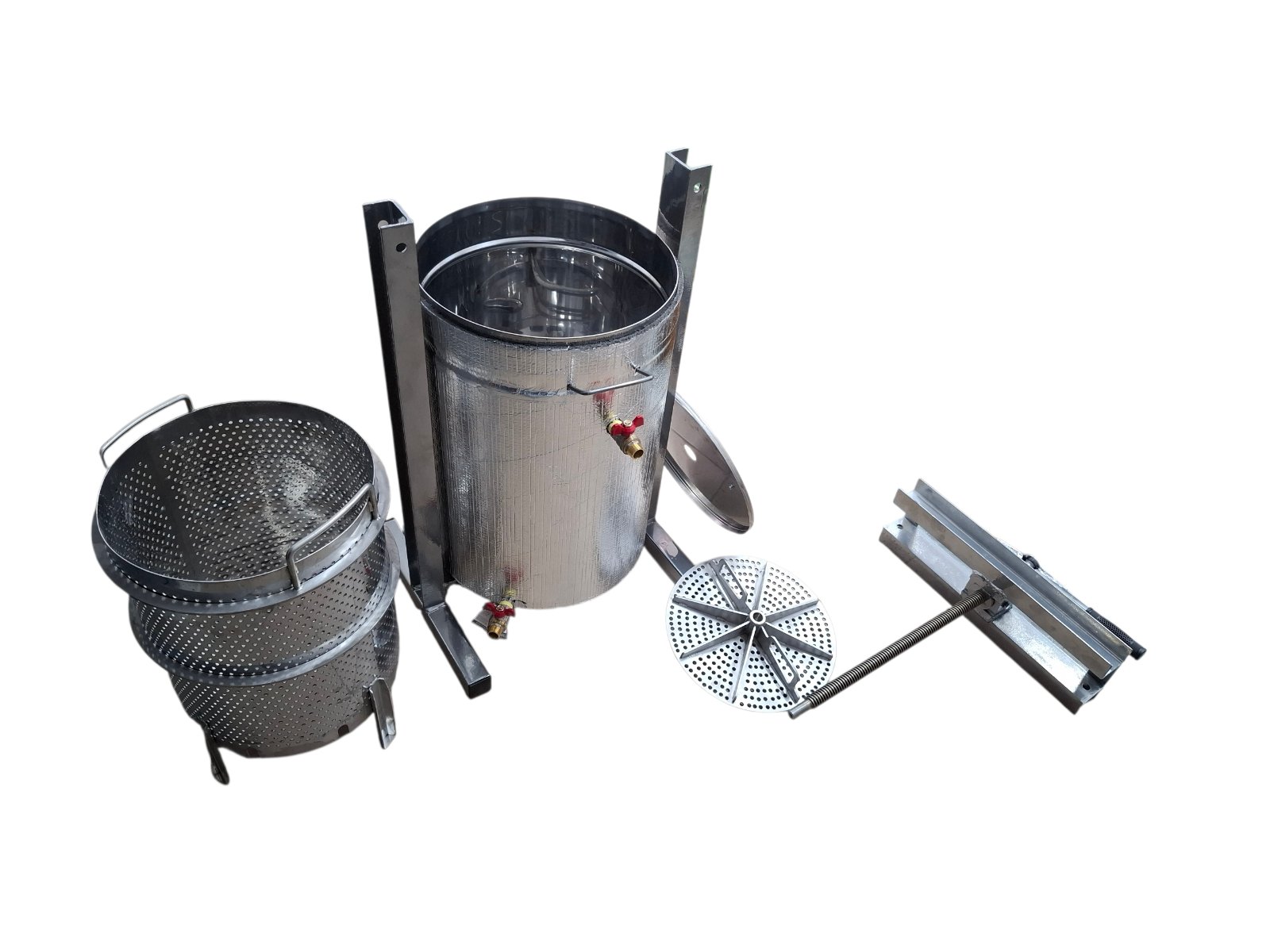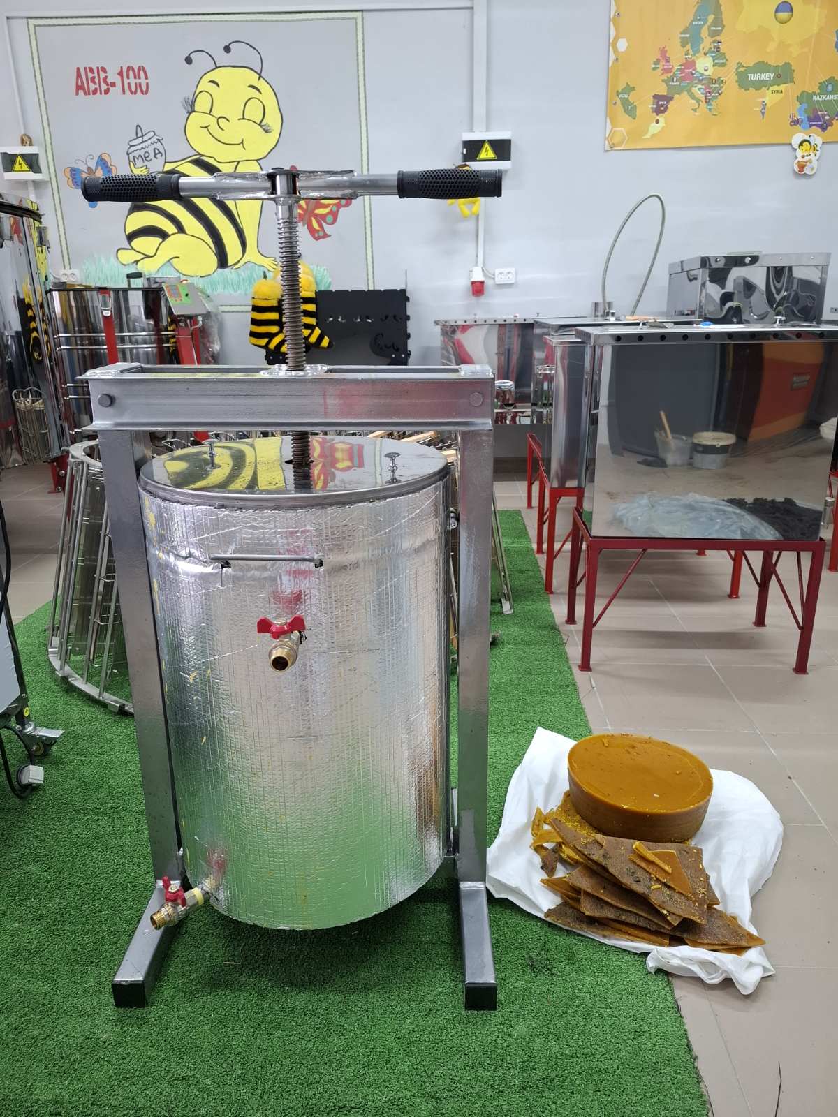 Воскопрес гвинтовий водяний з електропідігрівом (далі – воскопрес) призначений для ефективного вилучення воску з воскової сировини, такого як суш або мерва, шляхом виварювання з подальшим пресуванням.